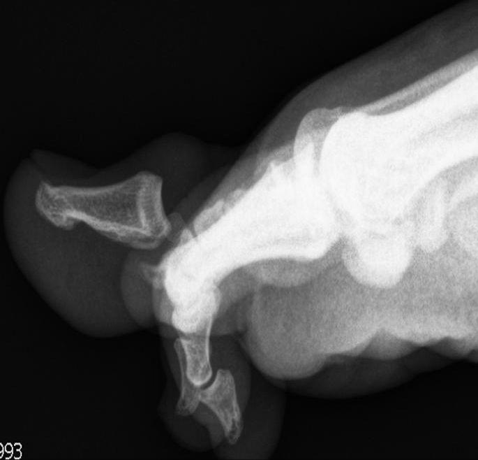 Een 20-jarige student kwam na een trauma naar de Spoedeisende Hulp met een pijnlijke, gezwollen grote teen links met hyperextensie in het interfalangeale gewricht. Gesloten repositie was niet mogelijk. Waarom niet? De laterale röntgenfoto toont de oorzaak.