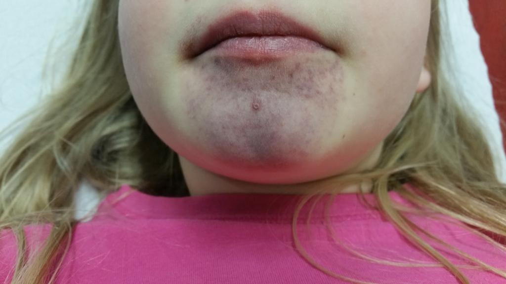 Een meisje van 9 komt een paar keer na elkaar naar de huisarts met een paarsblauwe verkleuring rond haar mond. Vooral haar kin is aangedaan. Zij is verder gezond en de afwijking verdwijnt steeds vanzelf. Na een gesprek is de diagnose helder.