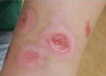 Een 12-jarig meisje komt naar de polikliniek Dermatologie vanwege blaren en ulceraties op de armen die 1 maand eerder waren ontstaan. Zij heeft een 10 huidafwijkingen op de niet-dominante arm en 1 op de rechter arm. Zij is niet ziek en heeft geen andere afwijkingen van de huid en slijmvliezen. Wat is de diagnose?