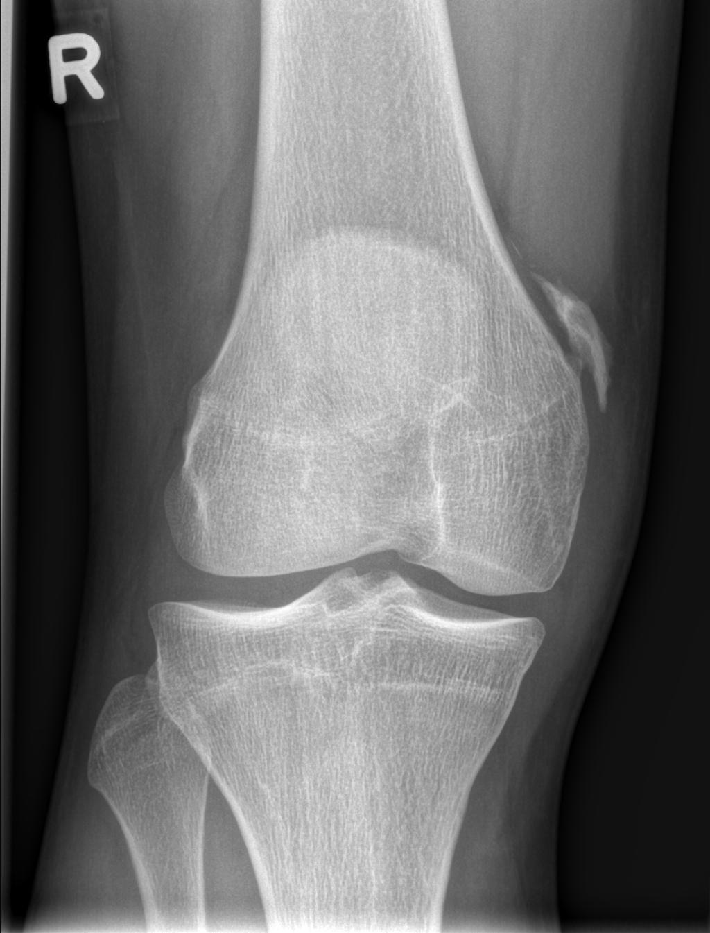 Een 19-jarige man bezocht de polikliniek Orthopedie vanwege pijn en een zwelling aan de mediale zijde van zijn rechter knie. Hij had 1,5 jaar eerder 2 maal een distorsie van de knie gehad tijdens het voetballen.