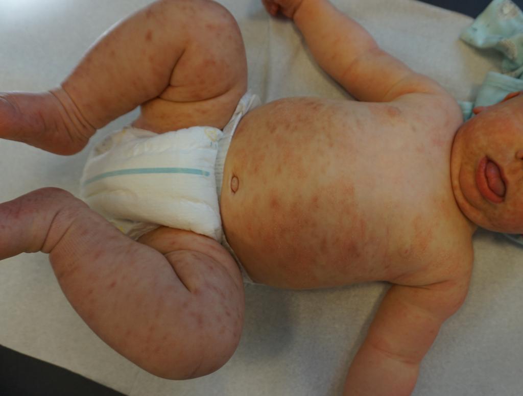 Gepubliceerd: Week 34 - 2020 209 deelnemers Een baby van 6 maanden komt bij de dermatoloog vanwege asymptomatische huidafwijkingen, die een maand na de geboorte waren ontstaan en die zich langzaam uitbreidden. Het Darier-teken is positief. Wat is de diagnose? Antwoord polymorfe maculopapulaire cutane mastocytose urticaria constitutioneel eczeem Langerhans-cel-histiocytose Antwoord controleren