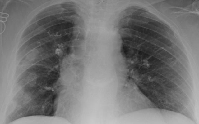 Een 59-jarige vrouw kwam op de Spoedeisende Hulp vanwege kortademigheid. Zij had ’s nachts een koude rilling gehad en een temperatuur van 38,9 °C. De voorgeschiedenis van patiënte vermeldde inzakkingsfracturen en ribfracturen. Bij lichamelijk onderzoek zagen we een niet acuut zieke vrouw met een temperatuur van 37,1 °C, een polsslag van 86/min, een ademhalingsfrequentie van 16/min en een zuustofsaturatie van 94%. Bij auscultatie van de longen hoorden wij beiderzijds midthoracaal lichte crepitaties. Bij laboratoriumonderzoek was de CRP-waarde 77 mg/l. Vanwege de verdenking op een pneumonie werd een röntgenfoto van de thorax gemaakt. Hierop werden meerdere scherp begrensde bolvormige structuren…
