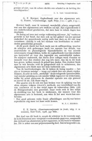 Dit artikel is alleen beschikbaar als PDF.Lees de PDF Artikelinformatie Online verschenen op 15 september 1928 Citeer dit artikel als Ned Tijdschr Geneeskd. 1928;72:4424-5 Heb je nog vragen na het lezen van dit artikel? Check onze AI-tool en verbaas je over de antwoorden. ASK NTVG Ook interessant Mededelingen De aluminiumlong Nieuws Over het ontstaan van aluminium-zepen na gebruik van aluminium-hydroxyde Nieuws Aluminium-vaatwerk Meer gerelateerd … Reacties Login om een reactie te plaatsen