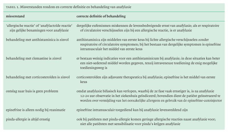 Enkele maanden geleden werd ik ’s avonds, toen ik dienst had, gebeld door een assistent-geneeskundige op de spoedeisende-hulpafdeling van ons ziekenhuis. Daar was een jongen van 8 jaar binnengekomen met zijn ouders, omdat hij bleek, licht in het hoofd en benauwd geworden was en galbulten had gekregen na het eten van een taartje waarin mogelijk noten of pinda’s waren verwerkt. Omdat de jongen zich zo beroerd voelde, werd besloten hem snel te behandelen en niet eerst de kinderarts in huis te laten komen. ‘Een anafylactoïde reactie’, luidde de diagnose. De poortarts had de jongen behandeld met clemastine en prednisolon intraveneus. Zijn vraag was of ik nog verdere suggesties had of dat hij de jongen naar huis mocht ontslaan.