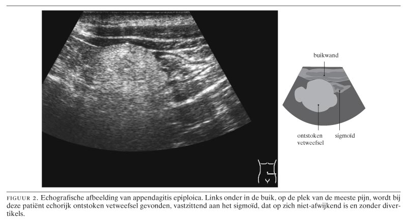 Door toegenomen gebruik van beeldvormende diagnostiek bij patiënten met acute buikklachten wordt appendagitis epiploica aanzienlijk vaker gediagnosticeerd dan voorheen. Klinisch wordt de aandoening meestal niet onderkend door de afwezigheid van onderscheidende symptomen. De ziekte heeft een goedaardig natuurlijk beloop, en een juiste diagnose met echografie en CT voorkomt een onnodige operatie en behandeling.