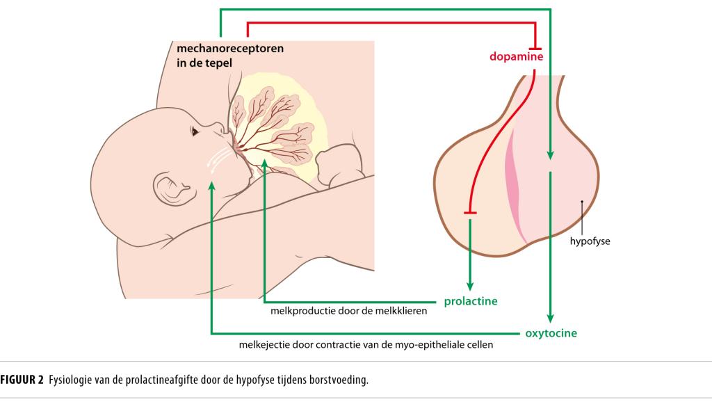 Patiënt A, een 19-jarige vrouw, werd verwezen vanwege secundaire amenorroe en galactorroe bij hyperprolactinemie (prolactine: 3,21 IU/l; referentiewaarde: < 0,60). Anamnestisch had patiënte sinds 2 maanden tepelvloed beiderzijds. Daarnaast was er gedurende de laatste 9 maanden sprake van misselijkheid, een opgezette buik en gewichtstoename. De verwijsbrief van de huisarts vermeldde in de voorgeschiedenis het prikkelbaredarmsyndroom, waarvoor patiënte mebeverine gebruikte.