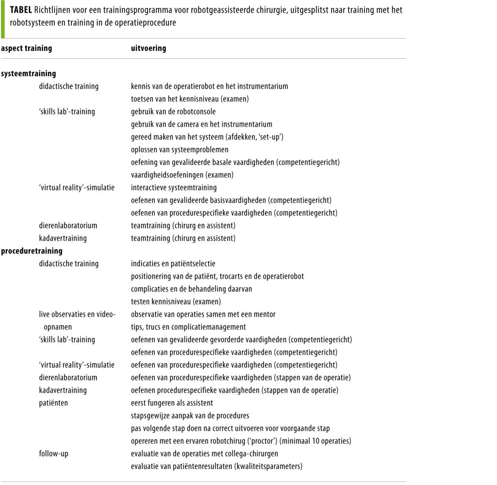 De training voor het uitvoeren van robotgeassisteerde minimaal-invasieve operaties kan worden uitgesplitst in 2 delen: systeem- en proceduretraining. Na de oefenmodules opereert een ervaren robotchirurg mee met een medisch specialist in training, totdat ook deze zich de ingreep heeft eigengemaakt (‘proctoring’).