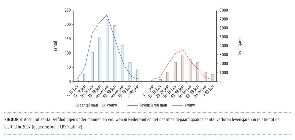 Vaststellen van tijdtrends in incidentie en gebruikte methoden van zelfdoding in de periode 1970-2007. Vaststellen van het verlies aan levensjaren.