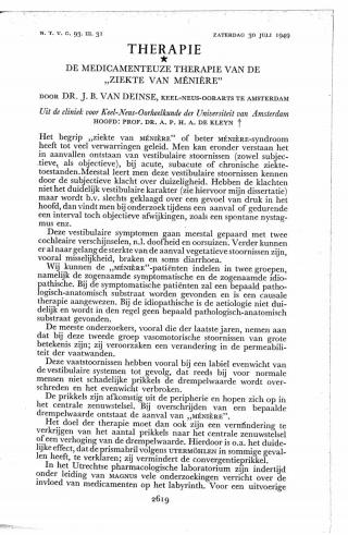 Dit artikel is alleen beschikbaar als PDF.Lees de PDF Artikelinformatie Online verschenen op 3 juni 1949 Citeer dit artikel als Ned Tijdschr Geneeskd. 1949;93:2619-27 Heb je nog vragen na het lezen van dit artikel? Check onze AI-tool en verbaas je over de antwoorden. ASK NTVG Ook interessant Stand van zaken Prisma-therapie van de ziekte van Ménière Onderzoek Nieuwe inzichten betreffende pathogenese en therapie van de ziekte van Menière Geschiedenis De 'ziekte van Van Leeuwenhoek' Meer gerelateerd … Reacties Login om een reactie te plaatsen