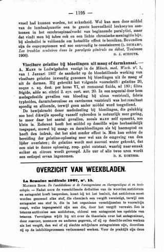 Dit artikel is alleen beschikbaar als PDF.Lees de PDF Artikelinformatie Online verschenen op 11 maart 1907 Citeer dit artikel als Ned Tijdschr Geneeskd. 1907;51:1195-200 Heb je nog vragen na het lezen van dit artikel? Check onze AI-tool en verbaas je over de antwoorden. ASK NTVG Ook interessant Nieuws De invloed van urinezuur op de permeabiliteit van membranen Nieuws Diphtherie-membranen Klinische les De hyaliene-membranenziekte Meer gerelateerd … Reacties Login om een reactie te plaatsen