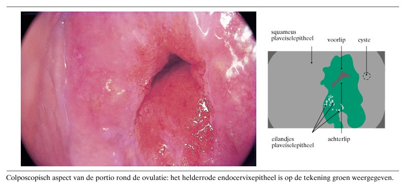 Een 31-jarige multipara had geringe cytologische afwijkingen in een cervixuitstrijk. Daarom werd haar portio met een speculum ingesteld en vervolgens gedept met een oplossing van azijnzuur 3, waarna de ectocervix met een colposcoop met een vergroting van 10 × werd onderzocht (figuur). Het ostium externum was geopend. Er kwam veel helder cervixslijm naar buiten, wat wees op een hoge oestrogeenconcentratie; waarschijnlijk vond het onderzoek juist plaats op een moment vlak voor of rond de ovulatie. Als men met een lang anatomisch pincet het slijm had gevat, had men zeker een lange draad van bijna 8 cm kunnen…