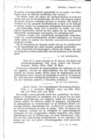 Dit artikel is alleen beschikbaar als PDF.Lees de PDF Artikelinformatie Online verschenen op 26 augustus 1935 Citeer dit artikel als Ned Tijdschr Geneeskd. 1935;79:3992 Heb je nog vragen na het lezen van dit artikel? Check onze AI-tool en verbaas je over de antwoorden. ASK NTVG Ook interessant Media Die Liebesfähigkeit Media Die Störungen der Liebesfähigkeit beim Weibe Reacties Login om een reactie te plaatsen