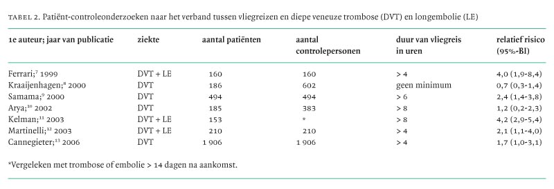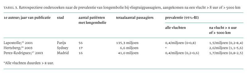 - Epidemiologische studies tonen een toegenomen relatief risico op trombo-embolie bij vliegreizen langer dan 8 uur en vooral bij patiënten met een verhoogd risico op deze aandoening, bijvoorbeeld door een aangeboren trombofilie of door pilgebruik.