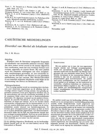 Dit artikel is alleen beschikbaar als PDF.Lees de PDF Artikelinformatie Online verschenen op 18 maart 1979 Citeer dit artikel als Ned Tijdschr Geneeskd. 1979;123:1296-8 Heb je nog vragen na het lezen van dit artikel? Check onze AI-tool en verbaas je over de antwoorden. ASK NTVG Ook interessant Onderzoek Het Meckel-divertikel Klinische les Meckels divertikel Casuïstiek Sinaasappelileus bij een Meckel-divertikel Meer gerelateerd … Reacties Login om een reactie te plaatsen