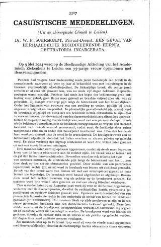 Dit artikel is alleen beschikbaar als PDF.Lees de PDF Artikelinformatie Online verschenen op 15 juli 1927 Citeer dit artikel als Ned Tijdschr Geneeskd. 1927;71:3317-21 Heb je nog vragen na het lezen van dit artikel? Check onze AI-tool en verbaas je over de antwoorden. ASK NTVG Ook interessant Nieuws Vaak en herhaaldelijk operatief ingrijpen bij de ziekte van Crohn in het terminale ileum Onderzoek Hernia obturatoria incarcerata Onderzoek Over de diagnose en operatie der hernia obturatoria incarcerata Meer gerelateerd … Reacties Login om een reactie te plaatsen