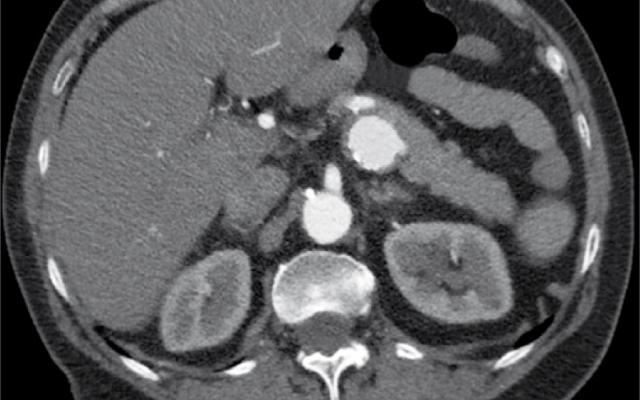 Een 73-jarige vrouw met hypertensie presenteerde zich op de Spoedeisende Hulp met acuut ontstane, hevige buikpijn die continu sinds 10 h aanwezig was. Daarnaast was zij misselijk en had zij gebraakt. Bij lichamelijk onderzoek zagen wij een zieke vrouw met pijn, maar zonder koorts. Patiënte was hemodynamisch stabiel. Peri-umbilicaal gaf zij percussie- en loslaatpijn aan. Laboratoriumonderzoek toonde geen afwijkingen. De klinische symptomen pasten bij een acute buik. Differentiaaldiagnostisch dachten wij aan coprostase, mogelijk op basis van een ruimte-innemend proces, of ischemie van het mesenterium. Op röntgenopnamen van de thorax en van het abdomen werd rechtszijdige coprostase gezien, zonder een…