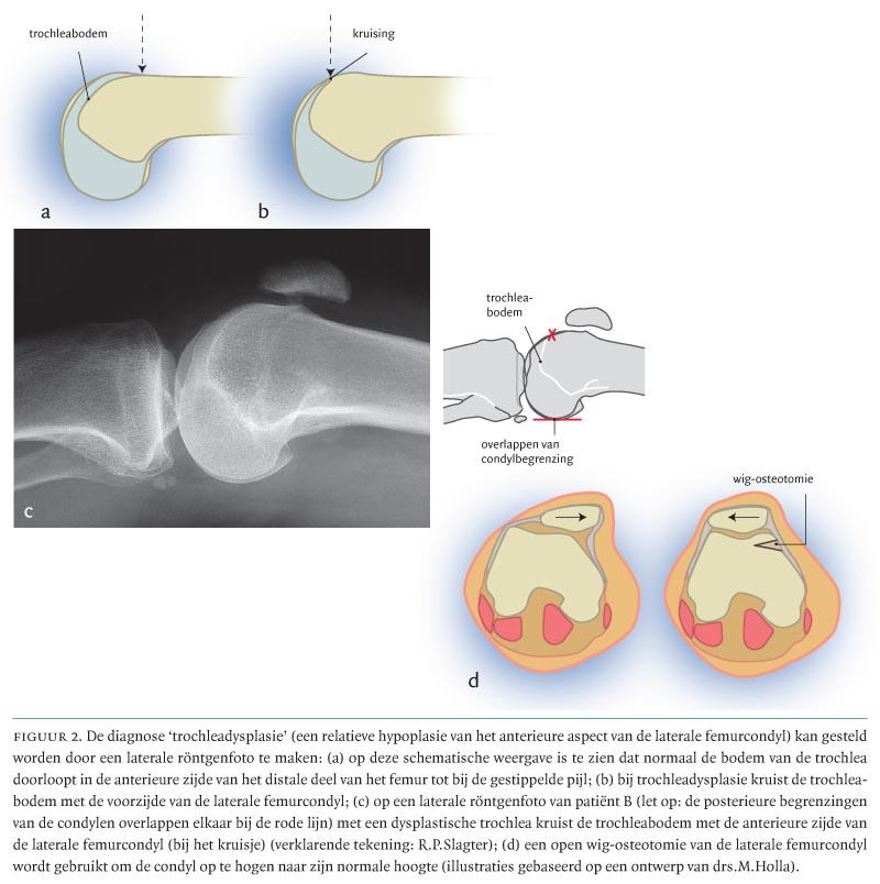 Over de resultaten van de trochlea-osteotomie ter correctie van een trochleadysplasie is nauwelijks literatuur voorhanden.13 Recent beschreven wij een groep van 23 patiënten bij wie de trochlea werd opgehoogd:20 bij 21 patiënten was deze ingreep succesvol en traden geen luxaties of subluxaties meer op.