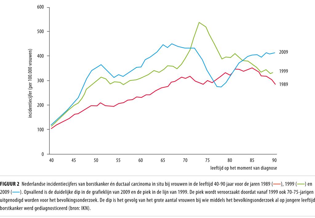 Hierbij worden meer dan 5000 mammacarcinomen ontdekt (0,6% van de gescreende vrouwen); van deze maligniteiten bevindt 70% zich in een stadium < II, wat prognostisch gunstig is.