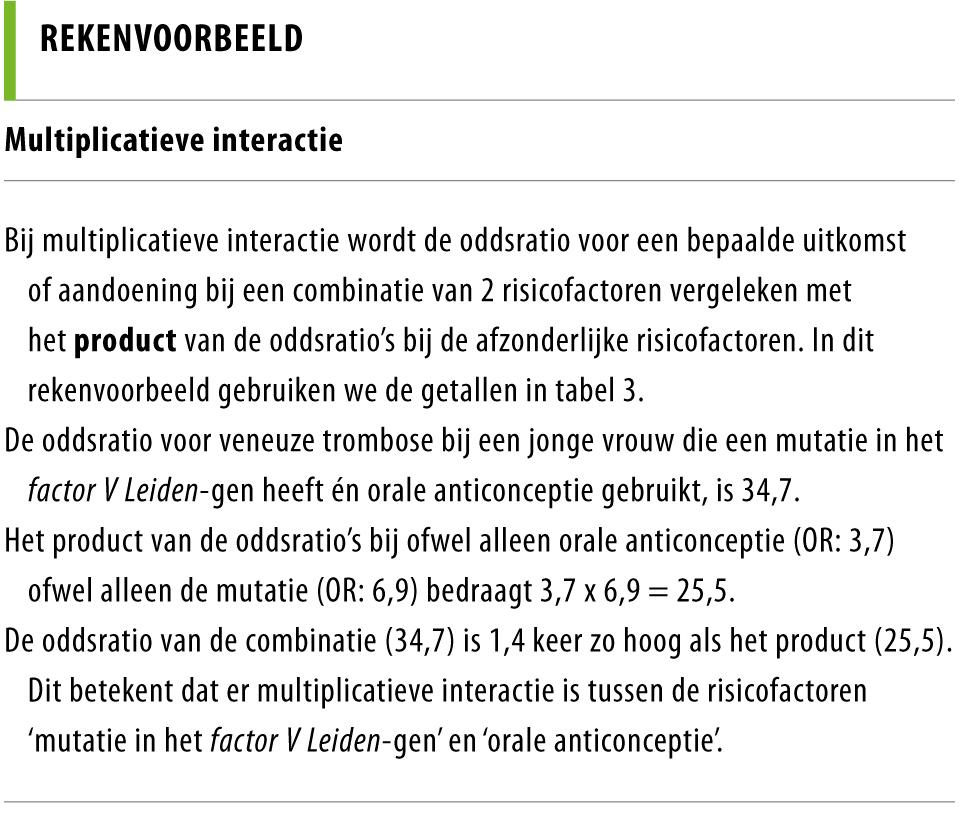 - Interactie betekent dat de combinatie van 2 determinanten meer of minder effect heeft dan de determinanten afzonderlijk. Het doel is om de causale relatie tussen deze 2 determinanten en de uitkomst zo goed mogelijk te schatten. Interactie kan op een additieve of multiplicatieve schaal berekend worden.