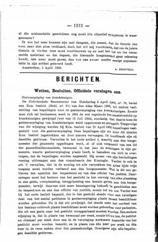Dit artikel is alleen beschikbaar als PDF.Lees de PDF Artikelinformatie Online verschenen op 17 maart 1908 Citeer dit artikel als Ned Tijdschr Geneeskd. 1908;52:1212 Heb je nog vragen na het lezen van dit artikel? Check onze AI-tool en verbaas je over de antwoorden. ASK NTVG Ook interessant Nieuws Verpleging van zwakzinnigen Nieuws Verpleging van zwakzinnigen Nieuws De gezinsverpleging van krankzinnigen Meer gerelateerd … Reacties Login om een reactie te plaatsen