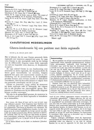 Dit artikel is alleen beschikbaar als PDF.Lees de PDF Artikelinformatie Online verschenen op 6 mei 1958 Citeer dit artikel als Ned Tijdschr Geneeskd. 1958;102:2150-4 Heb je nog vragen na het lezen van dit artikel? Check onze AI-tool en verbaas je over de antwoorden. ASK NTVG Ook interessant Casuïstiek Zeldzame localisatie van de zoogenaamde ileitis regionalis Onderzoek Glucose-intolerantie bij ouderen in Nederland; het Twello-onderzoek Stand van zaken Lactose-intolerantie. II. Nieuwe biologische inzichten Meer gerelateerd … Reacties Login om een reactie te plaatsen