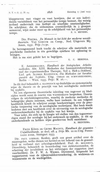 Dit artikel is alleen beschikbaar als PDF.Lees de PDF Artikelinformatie Online verschenen op 17 juni 1933 Citeer dit artikel als Ned Tijdschr Geneeskd. 1933;77:2826-7 Heb je nog vragen na het lezen van dit artikel? Check onze AI-tool en verbaas je over de antwoorden. ASK NTVG Ook interessant Media Handbuch der gesamten Unfallheilkunde Media Handbuch der gesamten Unfallheilkunde Media Handbuch der gesamten Unfallheilkunde Meer gerelateerd … Reacties Login om een reactie te plaatsen