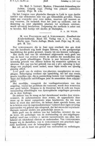 Dit artikel is alleen beschikbaar als PDF.Lees de PDF Artikelinformatie Online verschenen op 4 augustus 1932 Citeer dit artikel als Ned Tijdschr Geneeskd. 1932;76:3608-9 Heb je nog vragen na het lezen van dit artikel? Check onze AI-tool en verbaas je over de antwoorden. ASK NTVG Ook interessant Media Handbuch der Kinderheilkunde Media Handbuch der Kinderheilkunde Media Handbuch der Kinderheilkunde Meer gerelateerd … Reacties Login om een reactie te plaatsen