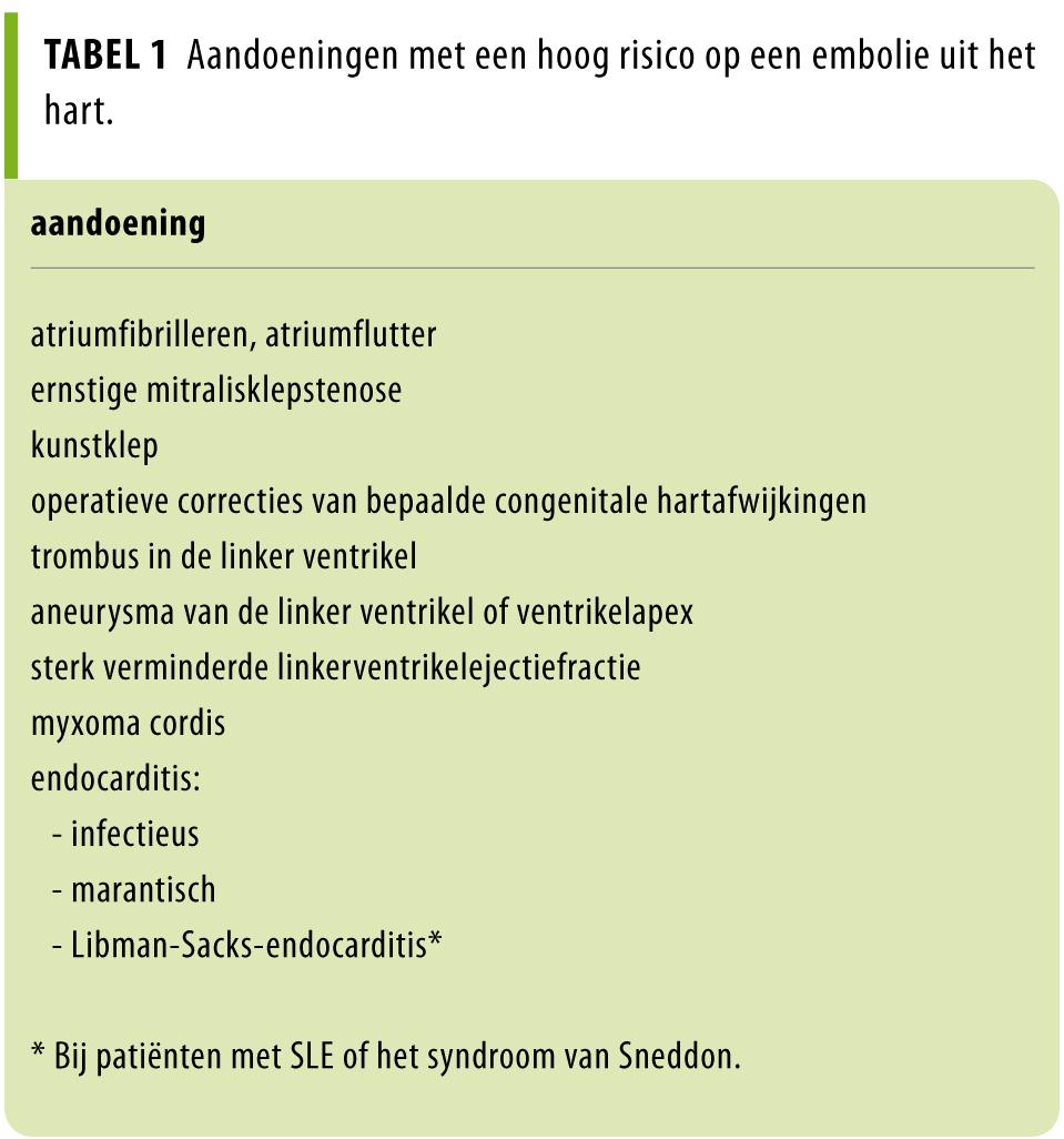 - Bij patiënten met een cardiale indicatie voor antistolling behoort deze beslissing te worden genomen in gezamenlijk overleg tussen cardioloog en neuroloog.
