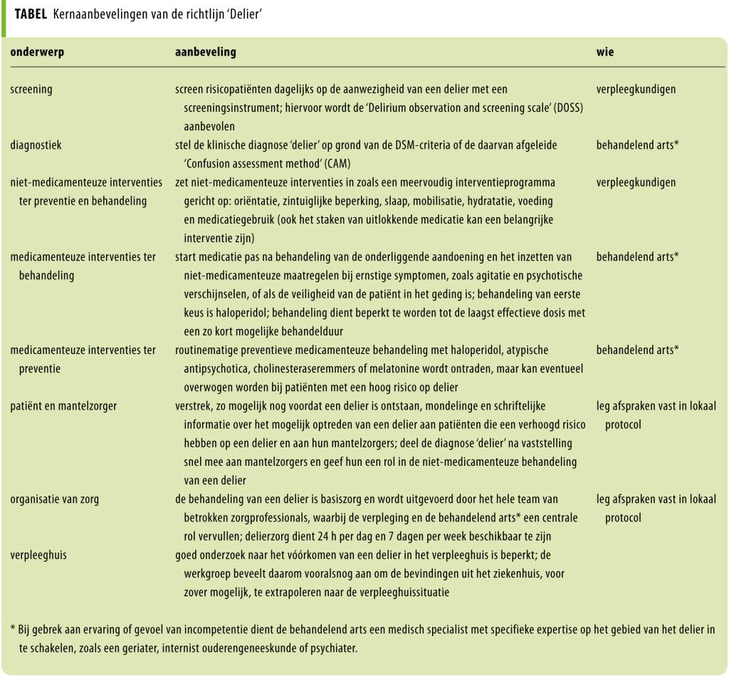- Op initiatief van de Nederlandse Vereniging voor Klinische Geriatrie heeft een multidisciplinaire werkgroep recent de richtlijn 'Delirium' uit 2004 herzien.