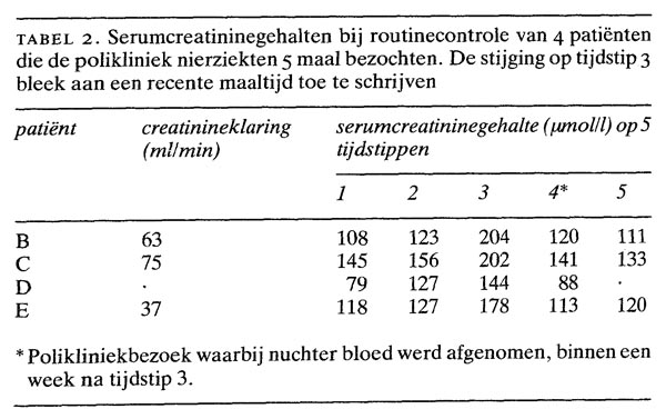 Het artikel van Halma (1990;1492-5) opent geen nieuwe gezichtspunten voor wat betreft het nut van de creatininebepaling in serum in vergelijking met de creatinineklaring. Het is echter zeer nuttig om de problematiek achter de creatininebepaling voor de klinische praktijk toe te lichten. De klinisch-chemisch analytische aspecten blijven in dit artikel nogal onderbelicht. De specificiteit van de creatininebepaling is klein t.o.v. die voor de meeste andere routinebepalingen. Het is dus belangrijk voor de praktizerend clinicus om op de hoogte te zijn van de mogelijke factoren die de creatininebepaling beïnvloeden. Er moet hierbij worden aangetekend dat weliswaar de meeste laboratoria de kinetische Jaffé-methode gebruiken voor hun analyses, maar dat die met allerlei kleine varianten worden toegepast om mogelijke interferenties te minimaliseren. Er moet op het laboratorium een compromis gevonden worden tussen het meten met voldoende gevoeligheid (belangrijk voor creatinine in pediatrische monsters) en het minimaliseren van de interferenties. Het zal dus voor de interpretatie van de creatininebepaling nodig zijn om op de hoogte te zijn van de gebruikte methode (inclusief varianten) op het eigen klinischchemisch laboratorium. Zo kan niet gesteld worden dat bilirubine boven 85 µmol de creatininebepaling beïnvloedt. Zo kan zeker ook hemolyse invloed uitoefenen op het resultaat en ook andere stoffen dan in het artikel genoemd, kunnen het bepalingsresultaat beïnvloeden. Het betreft dus hier geen bepalingsfout maar analytische aspecificiteit van de methode. Belangrijk is de constatering dat de bepaling van de creatinine in de Nederlandse laboratoria goed is zowel qua juistheid als qua precisie (4,5%), zeker als we dit bezien in Europees verband (10-20%) (bron: Stichting Kwaliteitsbewaking Ziekenhuis Laboratoria).