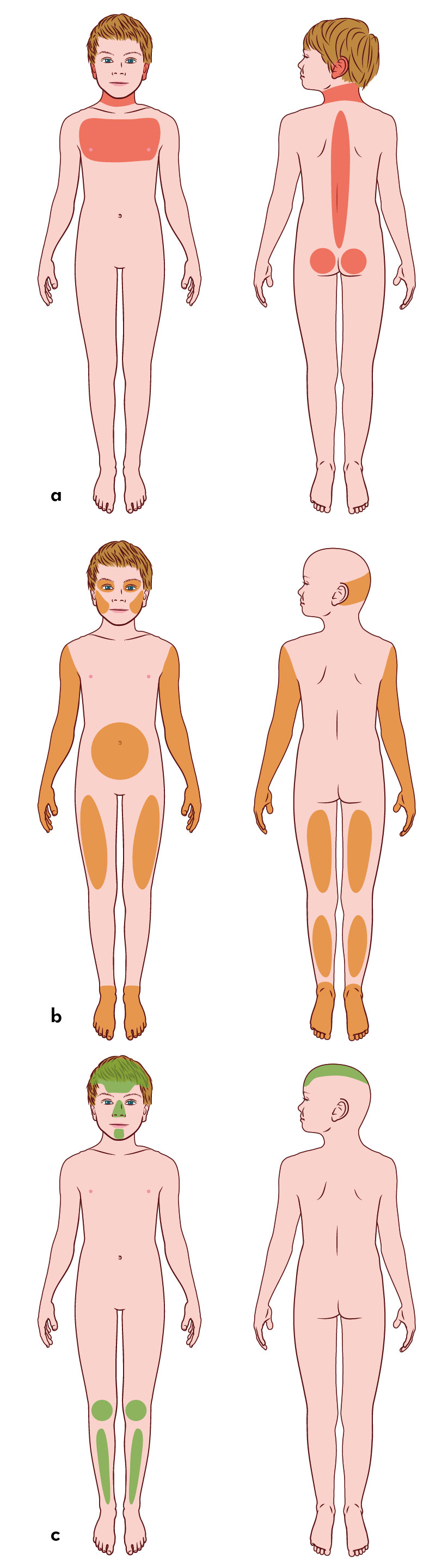 Voor de lijkschouw bij kinderen onder de 18 jaar is in de Wlb een aparte bepaling opgenomen. Een behandelend arts mag na het verrichten van de lijkschouw bij een kind pas een A-verklaring afgeven na overleg met een forensisch arts. Bij overleden kinderen is de medische voorgeschiedenis van belang, naast eventuele meldingen bij Veilig Thuis. Bij de inspectie van het lichaam ligt de nadruk op de voedingstoestand en eventueel zichtbaar letsel. Onderhuidse bloedingen ter plaatse van de oren, hals, nek, rug en billen zijn suggestief voor toegebracht letsel (figuur).