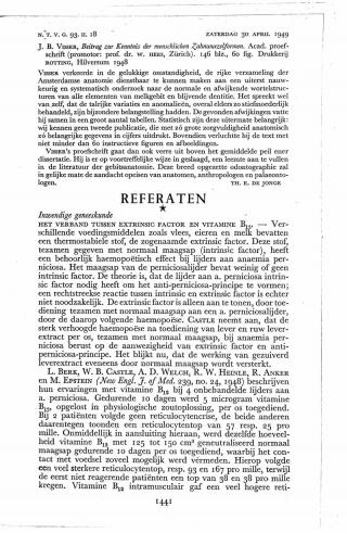 Dit artikel is alleen beschikbaar als PDF.Lees de PDF Artikelinformatie Online verschenen op 1 april 1949 Citeer dit artikel als Ned Tijdschr Geneeskd. 1949;93:1441-2 Heb je nog vragen na het lezen van dit artikel? Check onze AI-tool en verbaas je over de antwoorden. ASK NTVG Ook interessant Nieuws In intrinsic factor en de resorptie van Vitamine B<SUB>12</SUB> Media Intrinsic factor van Castle en resorptie van vitamine B<SUB>12</SUB> Nieuws Het verband tussen intrinsic factor en vitamine-B<SUB>12</SUB> uit het voedsel Meer gerelateerd … Reacties Login om een reactie te plaatsen