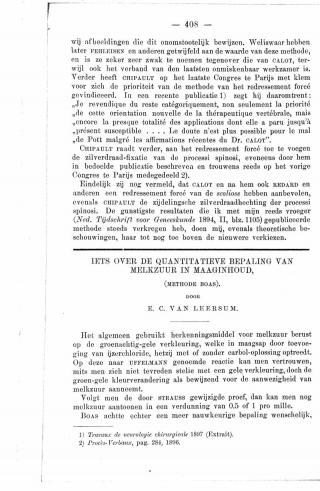 Dit artikel is alleen beschikbaar als PDF.Lees de PDF Artikelinformatie Online verschenen op 28 januari 1898 Citeer dit artikel als Ned Tijdschr Geneeskd. 1898;42:408-11 Heb je nog vragen na het lezen van dit artikel? Check onze AI-tool en verbaas je over de antwoorden. ASK NTVG Ook interessant Nieuws Quantitatieve zoutzuurbepaling in den maaginhoud Onderzoek Een eenvoudige methode tot approximatieve bepaling van het zoutzuur- en melkzuurgehalte in maaginhoud Nieuws Eene nieuwe methode om vrij zoutzuur in den maaginhoud quantitatief te bepalen Meer gerelateerd … Reacties Login om een reactie te plaatsen