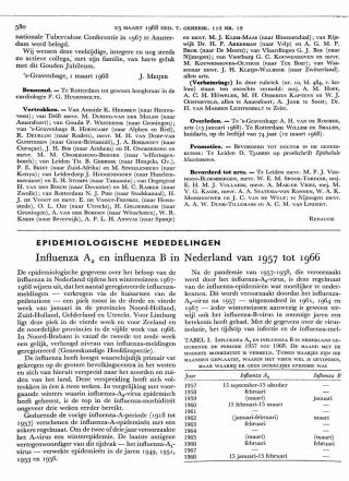 Dit artikel is alleen beschikbaar als PDF.Lees de PDF Artikelinformatie Online verschenen op 4 februari 1968 Citeer dit artikel als Ned Tijdschr Geneeskd. 1968;112:580-1 Heb je nog vragen na het lezen van dit artikel? Check onze AI-tool en verbaas je over de antwoorden. ASK NTVG Ook interessant Nieuws Influenza A<SUB>2</SUB> Onderzoek Influenza A<SUB>2</SUB> op het noordelijk halfrond Nieuws De beteekenis der ondergroepen A<SUB>1</SUB> en A<SUB>2</SUB> voor bloedtransfusies Meer gerelateerd … Reacties Login om een reactie te plaatsen