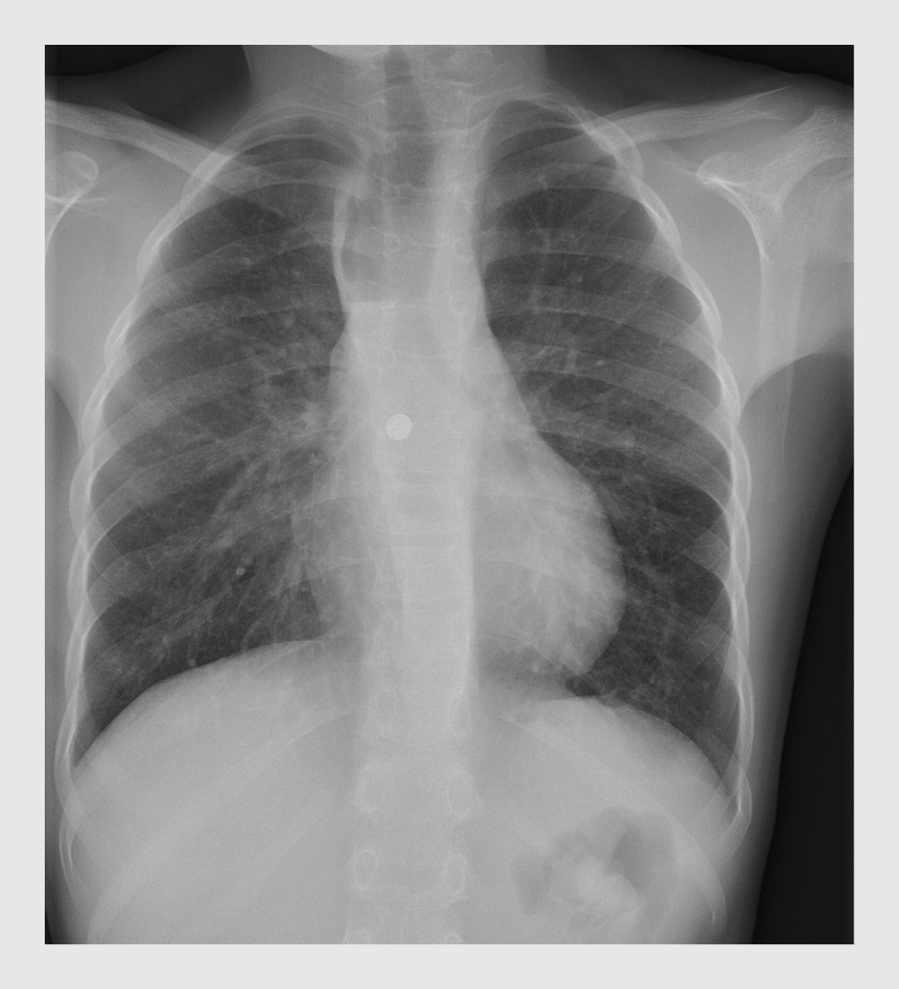 In de tweede of derde lijn moeten bij zowel symptomatische als asymptomatische kinderen die een lichaamsvreemd voorwerp hebben geslikt, of bij wie daarop een vermoeden is, één of meerdere röntgenfoto’s worden gemaakt. Belangrijk is dat op de – anterieur-posterieure en zo nodige laterale – röntgenfoto’s de tandenrij tot en met het abdomen zichtbaar is. In de nulde of eerste lijn moet een röntgenfoto worden gemaakt bij kinderen die een groot voorwerp (diameter > 2,5 cm of lengte > 6 cm) of een risicovol voorwerp (bijvoorbeeld een scherp voorwerp, een batterij of meerdere magneten) hebben ingeslikt, of bij wie daarop een vermoeden is, en bij kinderen bij wie symptomen optreden na ingestie van een corpus alienum (zie ‘Voor de huisarts’). Om die reden werd bij patiënt A geen röntgendiagnostiek verricht.