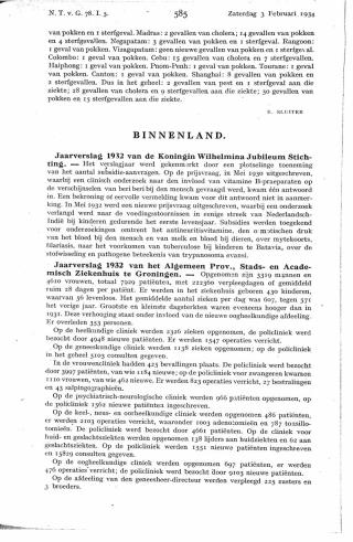 Dit artikel is alleen beschikbaar als PDF.Lees de PDF Artikelinformatie Online verschenen op 4 februari 1934 Citeer dit artikel als Ned Tijdschr Geneeskd. 1934;78:585 Heb je nog vragen na het lezen van dit artikel? Check onze AI-tool en verbaas je over de antwoorden. ASK NTVG Ook interessant Nieuws Jaarverslag van de Koningin Wilhelmina Jubileum stichting Nieuws Jaarverslag 1928 Koningin Wilhelmina Jubileumstichting Nieuws Jaarverslag 1926 Koningin Wilhelmina Jubileumstichting Meer gerelateerd … Reacties Login om een reactie te plaatsen