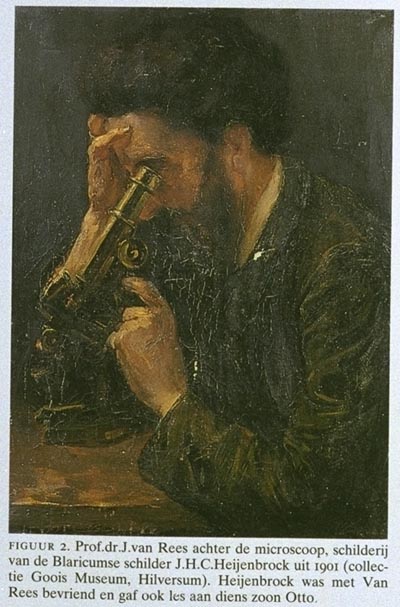In 1879 besloot Place, de toenmalige hoogleraar fysiologie aan de Amsterdamse universiteit, om ten behoeve van onderzoek en onderwijs in de weefselleer de jonge dr.J.van Rees uit Utrecht naar Amsterdam te halen. Aanvankelijk assistent, werd Van Rees in 1886 tot lector benoemd en in 1889 tot buitengewoon hoogleraar in de weefselleer, de eerste leerstoel op dit gebied in Nederland. Figuur 1 toont het gezin van de jonge lector, waarschijnlijk in hun woning aan de Jodenbreestraat, met zijn vrouw A.van Rees-Vatiché (een begaafd pianiste) en de twee kinderen Lizzy en Otto waarvan de laatste later een bekend kunstschilder is geworden.2…