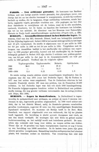 Dit artikel is alleen beschikbaar als PDF.Lees de PDF Artikelinformatie Online verschenen op 3 maart 1896 Citeer dit artikel als Ned Tijdschr Geneeskd. 1896;40:1047-8 Heb je nog vragen na het lezen van dit artikel? Check onze AI-tool en verbaas je over de antwoorden. ASK NTVG Ook interessant Nieuws Zuigelingensterfte in Oost-Pruisen Nieuws Cholera in Oost-Pruisen Mededelingen Opsporing van kanker in Oost-Pruisen Meer gerelateerd … Reacties Login om een reactie te plaatsen