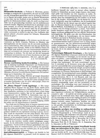 Dit artikel is alleen beschikbaar als PDF.Lees de PDF Artikelinformatie Online verschenen op 14 januari 1963 Citeer dit artikel als Ned Tijdschr Geneeskd. 1963;107:220 Heb je nog vragen na het lezen van dit artikel? Check onze AI-tool en verbaas je over de antwoorden. ASK NTVG Ook interessant Nieuws Maimonides herdacht Nieuws Mozes Maimonides (1135-1204) herdacht Nieuws Lavoisier herdacht Meer gerelateerd … Reacties Login om een reactie te plaatsen