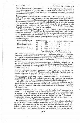 Dit artikel is alleen beschikbaar als PDF.Lees de PDF Artikelinformatie Online verschenen op 1 juli 1951 Citeer dit artikel als Ned Tijdschr Geneeskd. 1951;95:3070 Heb je nog vragen na het lezen van dit artikel? Check onze AI-tool en verbaas je over de antwoorden. ASK NTVG Ook interessant Zorg Tuberculose-onderzoek bij schoolkinderen Nieuws Tuberculose-onderzoek te Alkmaar Nieuws Tuberculose-onderzoek buitenlanders Meer gerelateerd … Reacties Login om een reactie te plaatsen