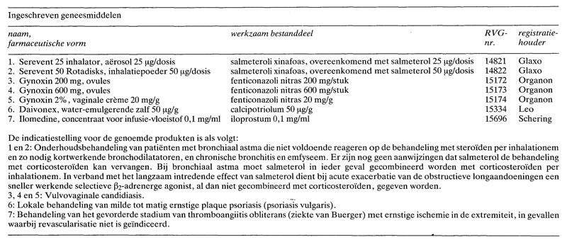 Het College ter beoordeling van geneesmiddelen heeft in de maand april 1992 de volgende geneesmiddelen met een voor Nederland nieuw werkzaam bestanddeel ingeschreven: