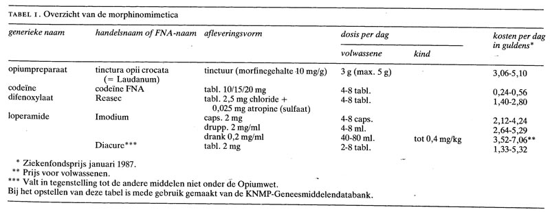– Codeïne. Alleen de relatief hoge prijs van loperamide en van tinctura opii crocata kan een argument zijn codeïne nog voor te schrijven. Het College ter Beoordeling van Geneesmiddelen adviseert echter codeïne niet meer bij diarree te gebruiken.