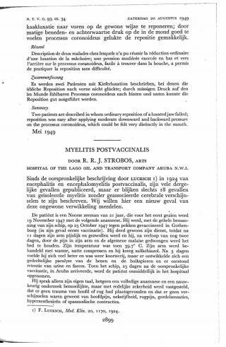 Dit artikel is alleen beschikbaar als PDF.Lees de PDF Artikelinformatie Online verschenen op 24 juni 1949 Citeer dit artikel als Ned Tijdschr Geneeskd. 1949;93:2899-901 Heb je nog vragen na het lezen van dit artikel? Check onze AI-tool en verbaas je over de antwoorden. ASK NTVG Ook interessant Onderzoek Encephalo-myelitis postvaccinalis Media Over encephalitis postvaccinalis Stand van zaken Encephalitis postvaccinalis Meer gerelateerd … Reacties Login om een reactie te plaatsen