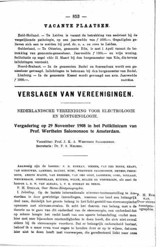 Dit artikel is alleen beschikbaar als PDF.Lees de PDF Artikelinformatie Online verschenen op 25 februari 1909 Citeer dit artikel als Ned Tijdschr Geneeskd. 1909;53:853-88 Heb je nog vragen na het lezen van dit artikel? Check onze AI-tool en verbaas je over de antwoorden. ASK NTVG Ook interessant Stand van zaken Nederlandsche vereeniging voor electrologie en röntgenologie Stand van zaken Nederlandsche vereeniging voor electrologie en röntgenologie Stand van zaken Nederlandsche vereeniging voor electrologie en röntgenologie Meer gerelateerd … Reacties Login om een reactie te plaatsen
