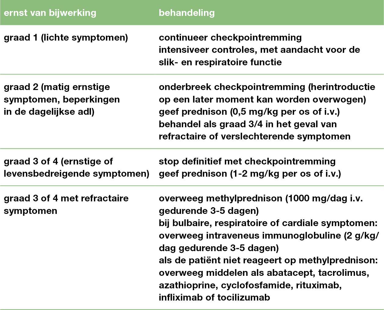 - Het is belangrijk deze immuungemedieerde neurologische bijwerkingen tijdig te herkennen, omdat het beloop ernstig kan zijn.
