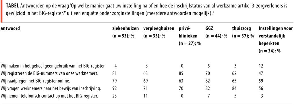De Wet op de Individuele Beroepen in de Gezondheidszorg (Wet BIG) is in 2013 voor de tweede keer geëvalueerd. Het onderzoek laat zien dat de BIG-registratie bij patiënten maar zeer beperkt bekend is en dat het systeem van voorbehouden handelingen voor patiënten nauwelijks zichtbaar is. Zorginstellingen (voornamelijk ziekenhuizen) checken het register wel vaak, net als verzekeringsmaatschappijen bij het contracteren van instellingen. De kennis over het systeem van voorbehouden handelingen is ook onder professionals matig, terwijl de organisatie van de zorg in sterke mate gebaseerd is op deze systematiek. De kwaliteitsborging van de beroepsuitoefening is – sinds de stelselwijziging in 2006 – veel meer verankerd in de interne structuur van de zorg; hierdoor is het met de wet BIG anders gelopen dan de wetgever voor ogen stond. Volgens de onderzoekers belemmert dit echter niet dat de Wet BIG nog een wezenlijke functie vervult. De Wet BIG is weliswaar niet op haar eindbestemming aangekomen, maar haar doel wordt langs een andere weg wel bereikt.