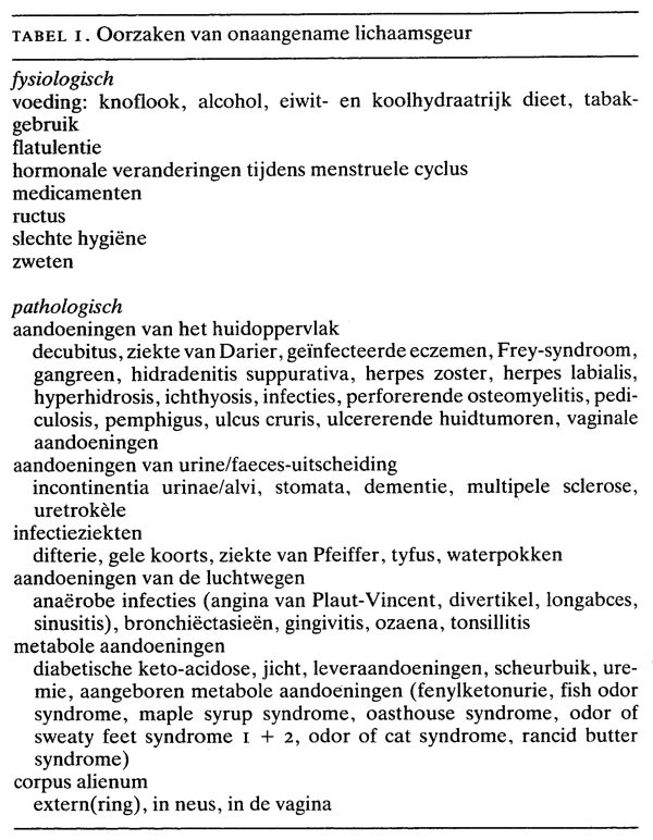 Tabel 1 geeft een overzicht van aan de geur te herkennen ziektebeelden.256 Wij willen ons echter in deze artikelenserie ‘kleine kwalen in de huisartsgeneeskunde’ beperken tot de volgende drie onderwerpen: