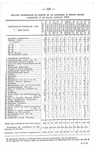 Onderzoek Opgaven betreffende de sterfte en de geboorten in eenige groote gemeenten in de maand augustus 1883
