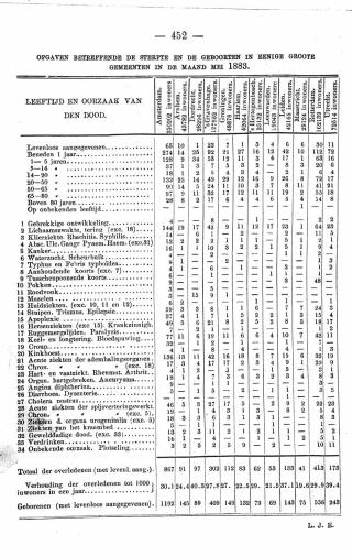 Onderzoek Opgaven betreffende de sterfte en de geboorten in eenige groote gemeenten in de maand augustus 1883