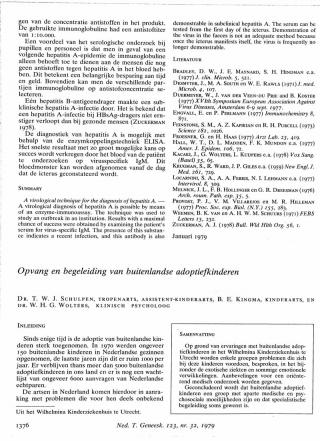 Dit artikel is alleen beschikbaar als PDF.Lees de PDF Artikelinformatie Online verschenen op 25 maart 1979 Citeer dit artikel als Ned Tijdschr Geneeskd. 1979;123:1376-81 Heb je nog vragen na het lezen van dit artikel? Check onze AI-tool en verbaas je over de antwoorden. ASK NTVG Ook interessant Nieuws Aspecten van ouder-kindbegeleiding Stand van zaken Zorg om buitenlandse adoptiekinderen Klinische les Adoptie van buitenlandse kinderen Meer gerelateerd … Reacties Login om een reactie te plaatsen